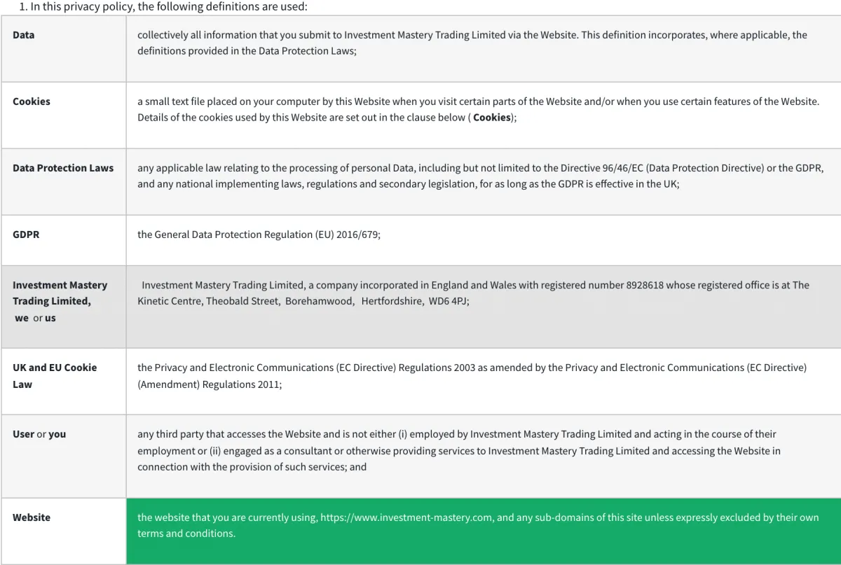 This privacy policy should be read alongside, and in addition to, our Terms and Conditions, which can be found at: https://www.investment-mastery.com/terms-and-conditions.